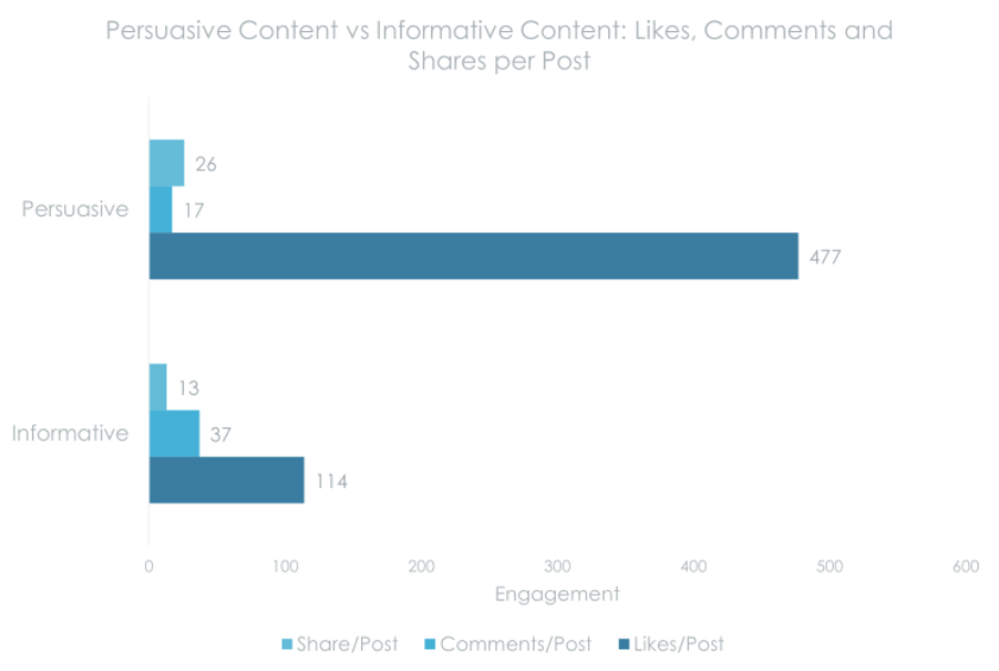 Another dimension we analysed is the Type of Content. In this case, the type of content can be divided into two categories: Informative and Persuasive.