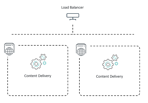 You can horizontally scale the Sitecore Experience Platform by dedicating multiple web applications to the same role within a topology. For example, you can deploy two instances of the Content Delivery role behind a load balancer: