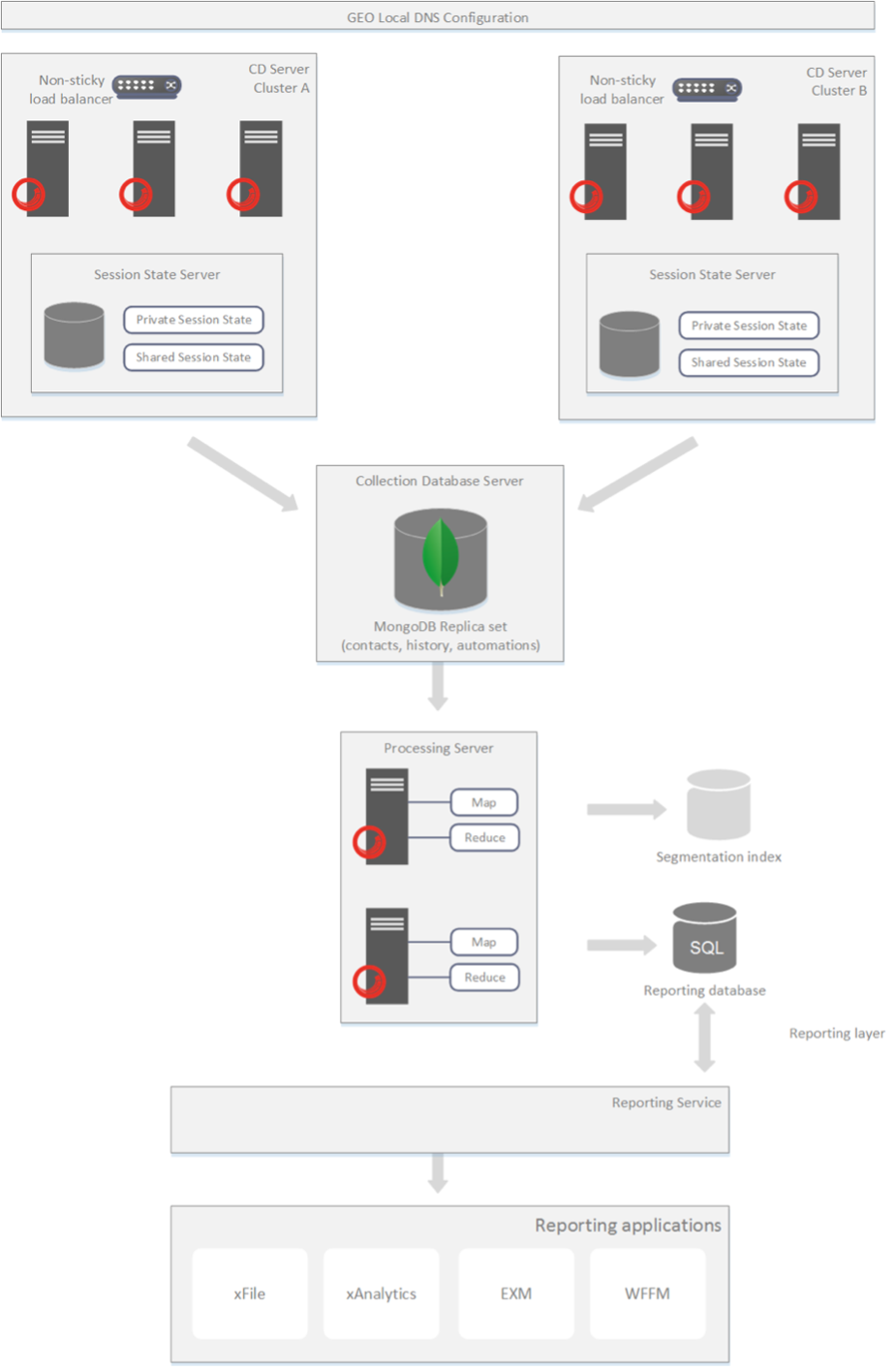 - A reporting database hosted on a dedicated Microsoft SQL Server instance (this could also be a failover cluster).